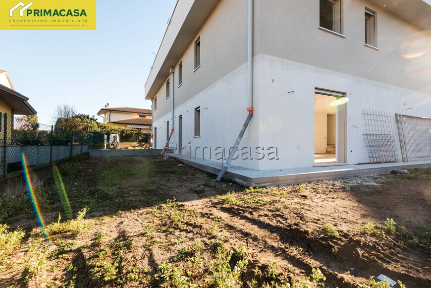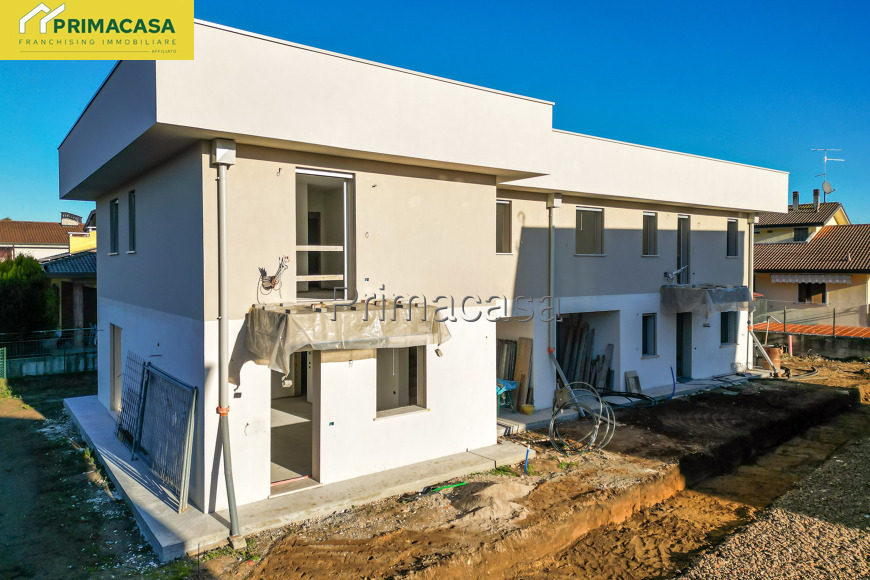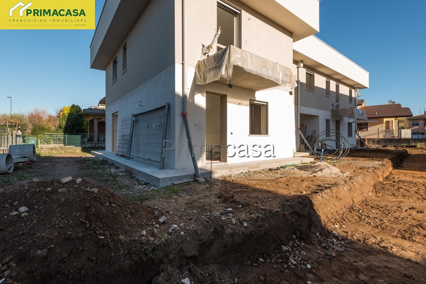 In fase di ultimazione, nuova ampia porzione di bifamiliare con spazioso giardino privato sui tre lati, completamente indipendente (anche la struttura è indipendente dall’ altra unità, con doppi pilastri e solai interrotti per un isolamento acustico totale) composta da ampio soggiorno con cucina a vista, bagno, box auto con basculante sezionale motorizzata, posto auto coperto e posto auto scoperto al piano terra; tre spaziose camere, bagno, ampia lavanderia/stireria e terrazzino al piano primo. Ingresso carraio e pedonale autonomo e nessuna spesa condominiale.