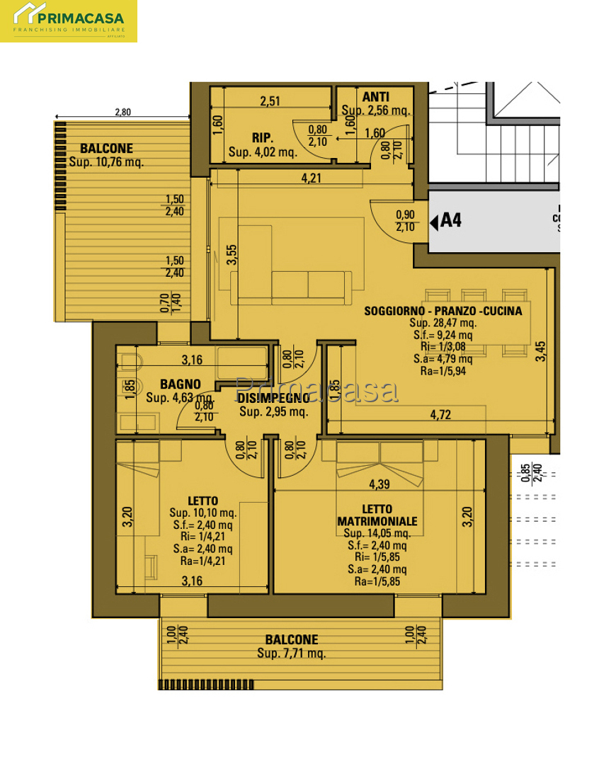 Appartamento al primo piano con ampia loggia , internamente, così composta: