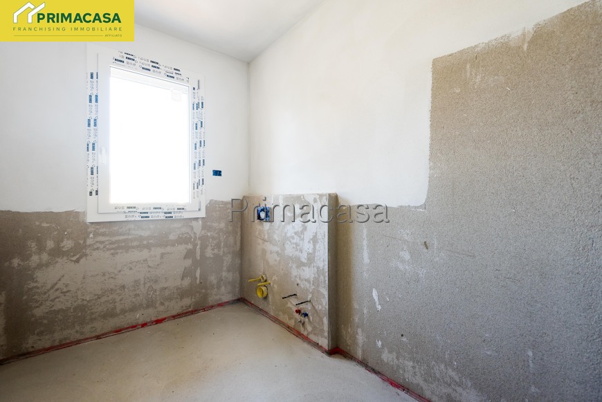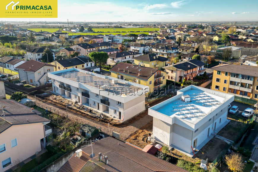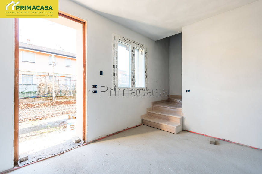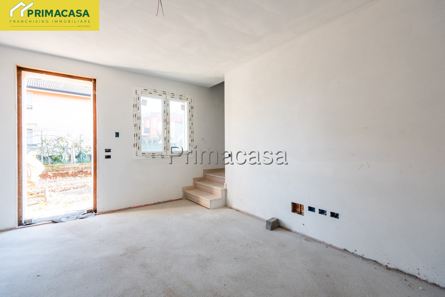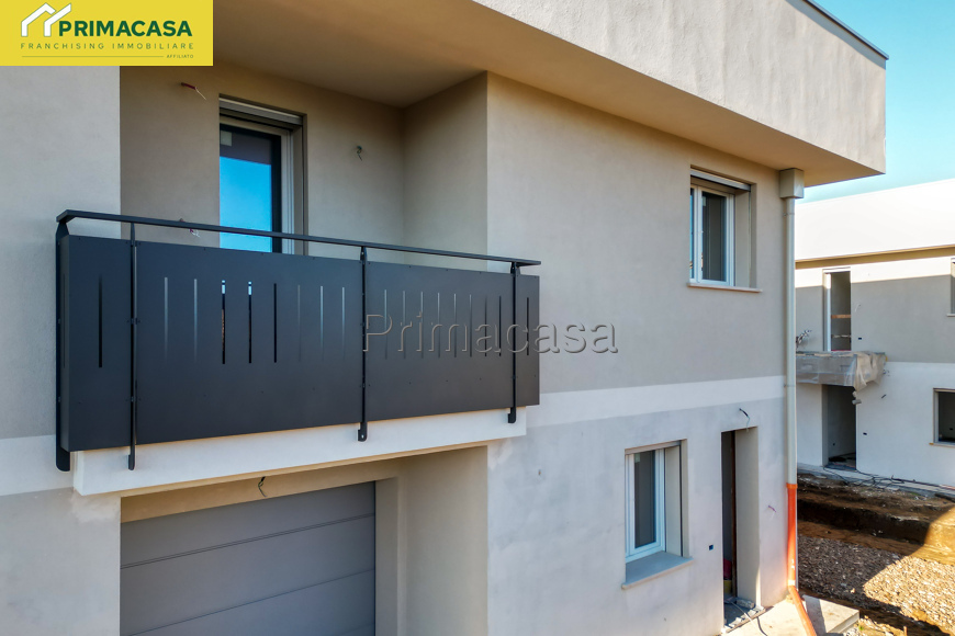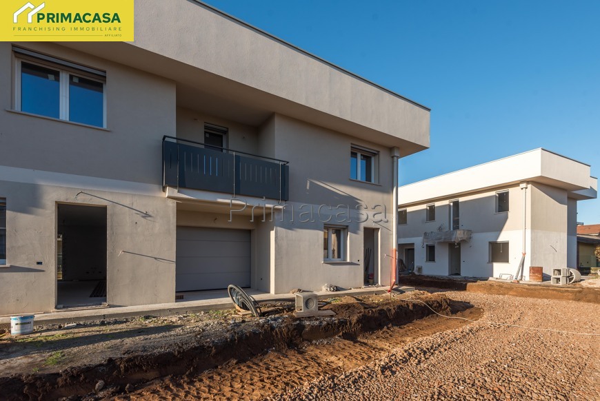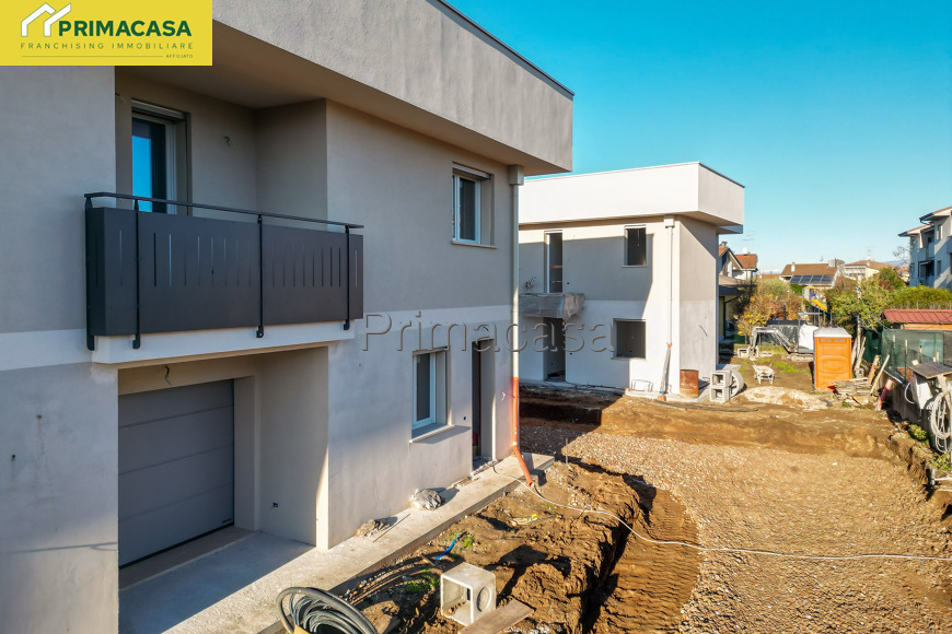 In fase di ultimazione, nuova ampia villetta angolare con spazioso giardino privato sui tre lati, completamente indipendente (anche la struttura è indipendente dall’ altra unità, con doppi pilastri e solai interrotti per un isolamento acustico totale) composta da ampio soggiorno con cucina a vista, bagno, box auto con basculante sezionale motorizzata e posto auto coperto al piano terra; tre spaziose camere, bagno, lavanderia/stireria e due terrazzini al piano primo. Ingresso carraio e pedonale autonomo e nessuna spesa condominiale.