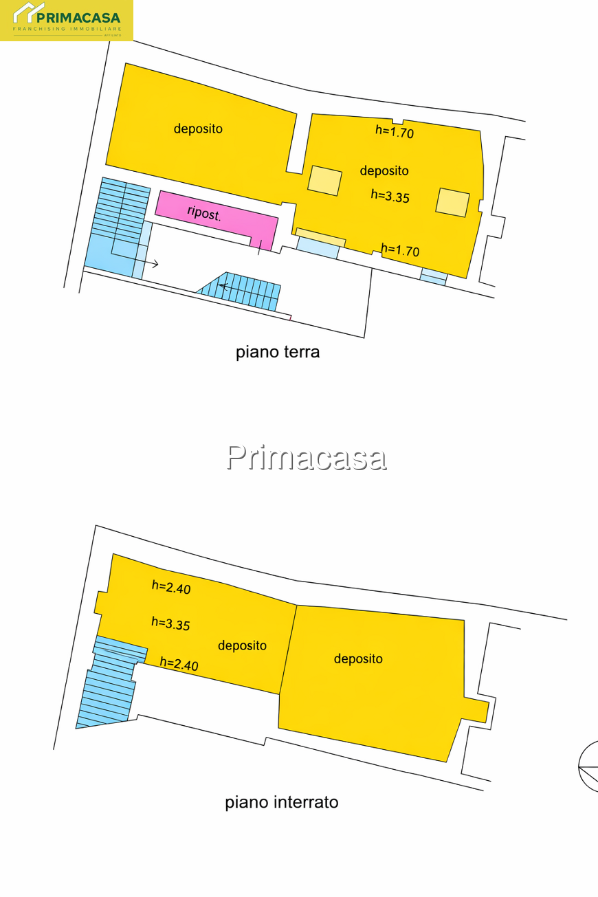 Al piano interrato si trovano due ulteriori locali deposito accessibili direttamente tramite scala esterna ideali come cantina archivio o spazio di stoccaggio