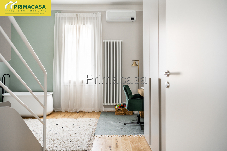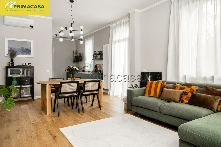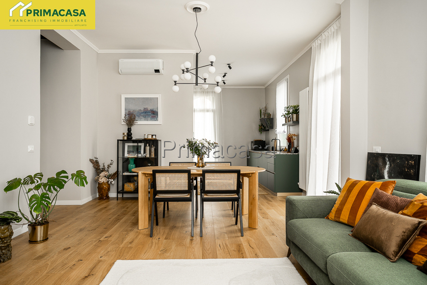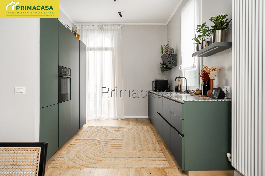 L’appartamento, completamente ristrutturato nel 2024 con impianti certificati, è composto da ampio salone con cucina a vista, ripostiglio/lavanderia, corridoio, doppi servizi, camera matrimoniale e camera doppia con vasca da bagno. Climatizzato con tre split. Ampia cantina al piano interrato.