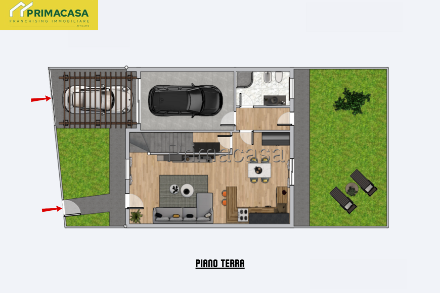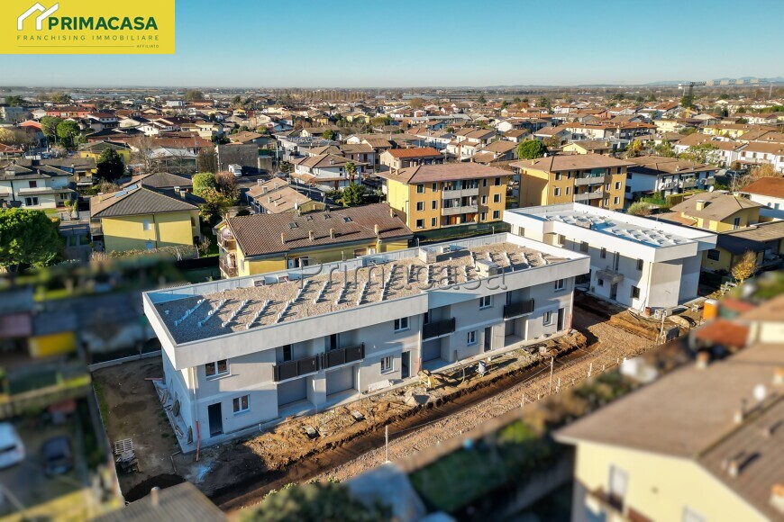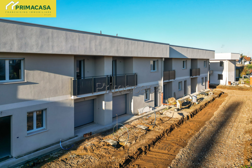 In fase di ultimazione, nuova ampia villetta con giardino privato fronte/retro, completamente indipendente (anche la struttura è indipendente dall’ altra unità, con doppi pilastri e solai interrotti per un isolamento acustico totale) composta da ampio soggiorno con cucina a vista, bagno, box auto con basculante sezionale motorizzata e posto auto coperto al piano terra; tre spaziose camere, bagno, lavanderia/stireria e due terrazzini al piano primo. Ingresso carraio e pedonale autonomo e nessuna spesa condominiale.