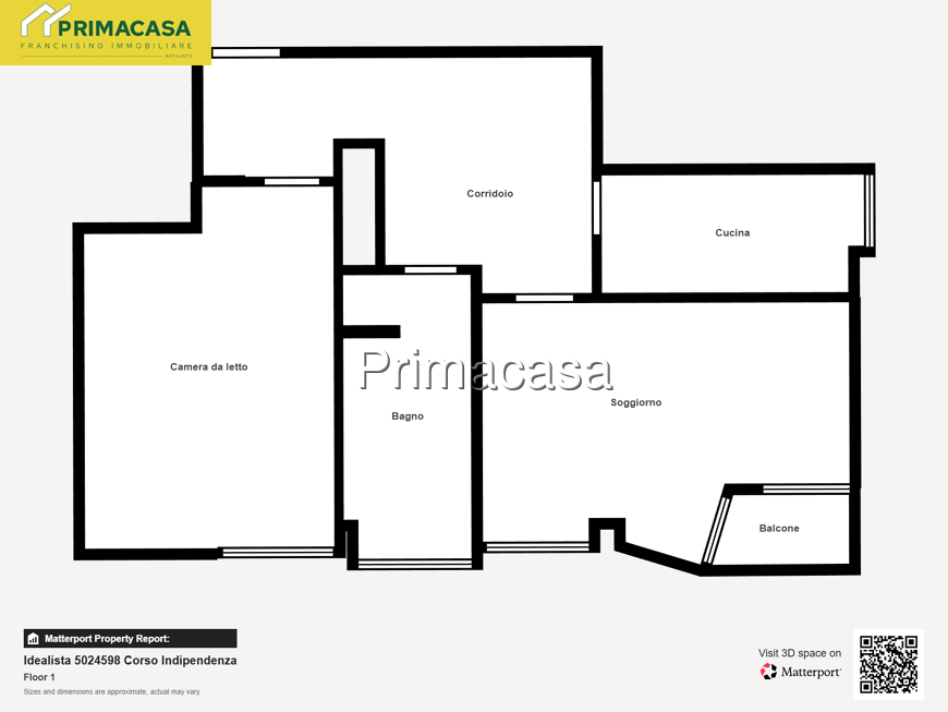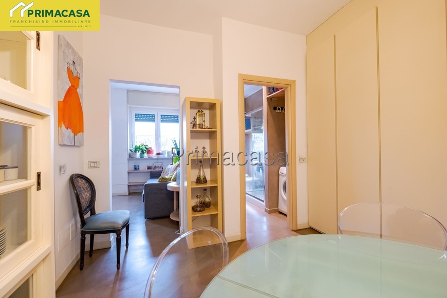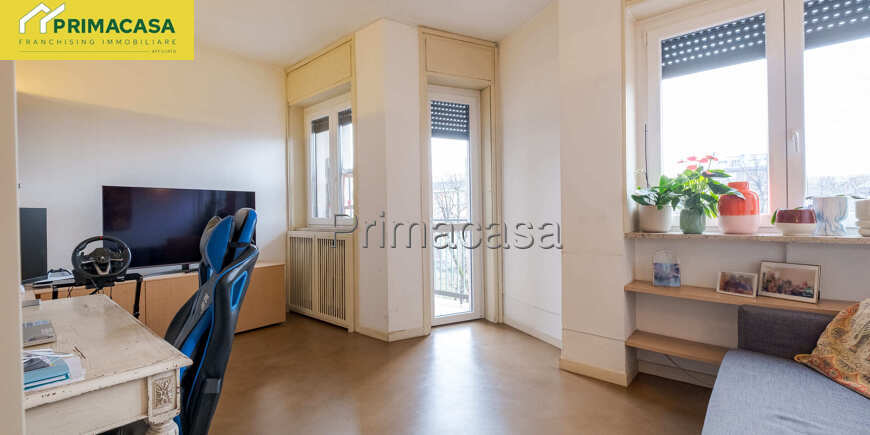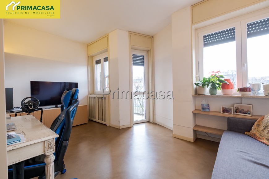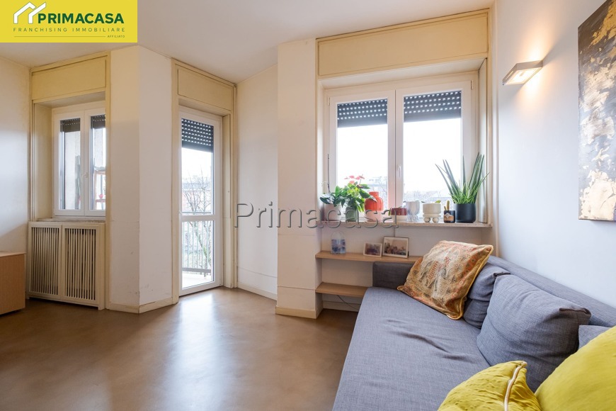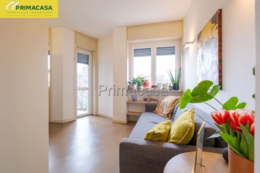 L’appartamento si presenta luminoso e ben distribuito, con ambienti ampi e funzionali: ingresso, soggiorno accogliente con accesso al balcone, cucina separata (o angolo cottura a seconda della configurazione), spaziosa camera matrimoniale e bagno finestrato. Il piano alto garantisce ottima luminosità e tranquillità.