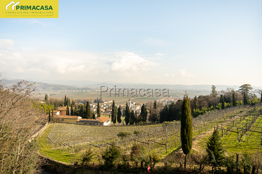 In prima collina, in contesto bifamiliare, appartamento con ingresso indipendente e stupenda vista panoramica dominante sito al piano primo ed ultimo, con giardino privato di 480 mq circa, composto di soggiorno, cucina abitabile, 2 camere matrimoniali, bagno e 3 balconi. Cantina, locale allo stato grezzo dove poter ricavare una taverna e garage. Rif. 2876