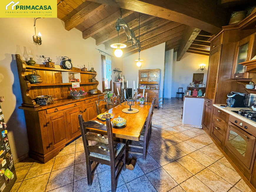 Le travi a vista donano calore e carattere agli ambienti, creando un’atmosfera moderna e allo stesso tempo raffinata.