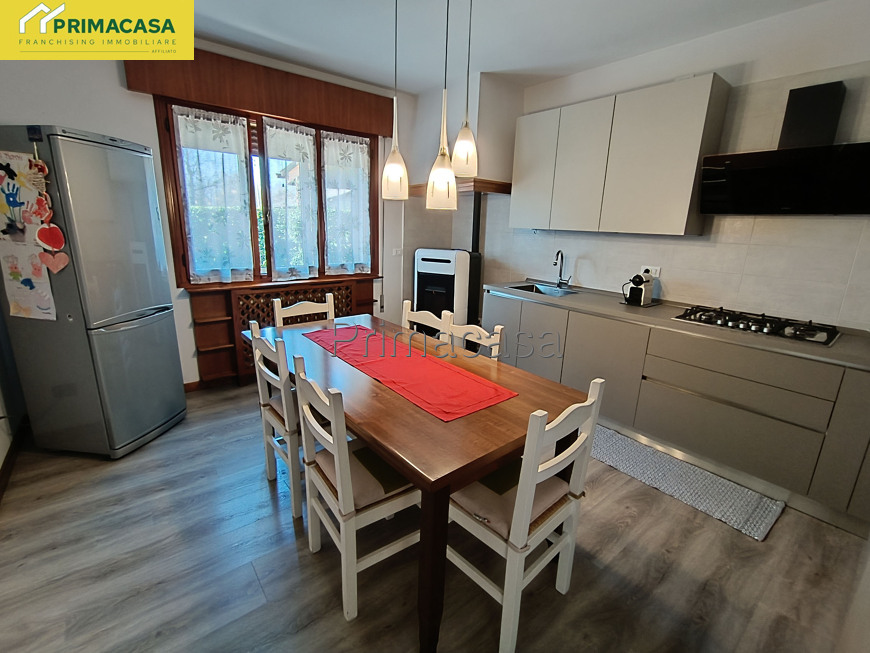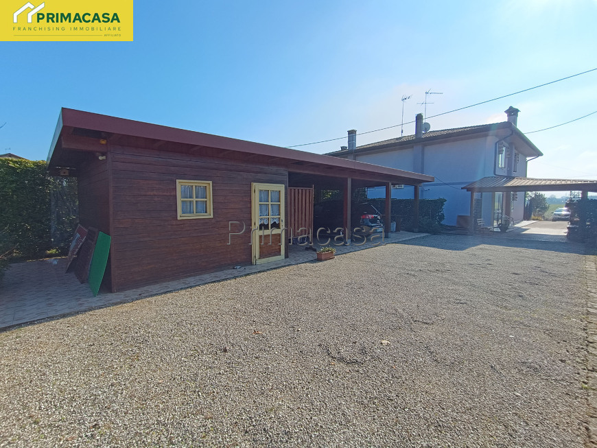 Proponiamo in vendita un'elegante porzione di villa bifamiliare, situata in un contesto tranquillo e riservato, a pochi passi dal centro del paese, perfetta per chi cerca un connubio tra comodità e riservatezza. L'immobile principale si sviluppa su due livelli ed è così composta: al piano terra troviamo un comodo ingresso, un ampio soggiorno, una cucina abitabile recentemente restaurata, un disimpegno che conduce ad un bagno ed una lavanderia. Al piano superiore, tre spaziose camere da letto, un secondo bagno e un balcone. Adiacente alla casa, troviamo un ampio annesso, dove sono stati ricavati 3 posti auto coperti ed un locale magazzino di 16mq. Completa il tutto una comoda pompeiana ed un ampio giardino, curato e ben piantumato, che offrono un’oasi di pace, perfetta per rilassarsi all’aria aperta. Un'opportunità davvero unica, da non perdere! RIF 62