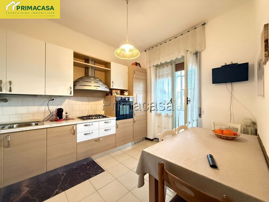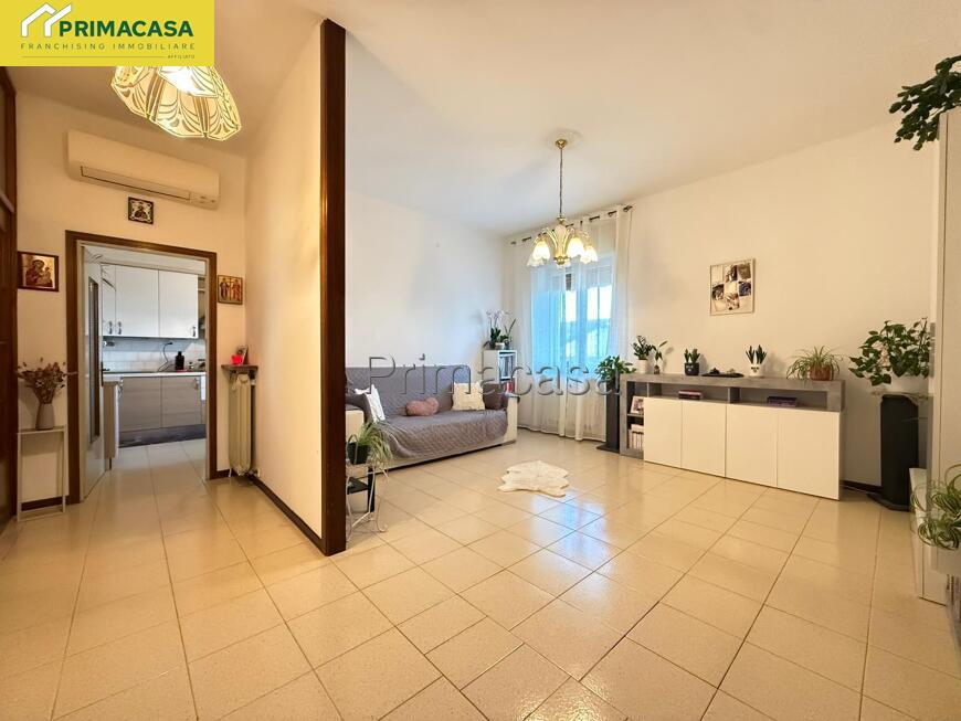 SAN PIETRO - Su via tranquilla e chiusa, ma allo stesso tempo in posizione strategica e comoda a tutti i servizi offerti dalla zona, proponiamo appartamento al piano primo composto da: ingresso su luminoso soggiorno, cucina abitabile servita da comoda terrazza verandata, bagno finestrato, due camere da letto matrimoniali. Completa la proprietà spaziosa cantina al piano seminterrato.