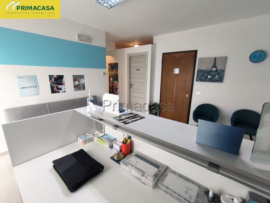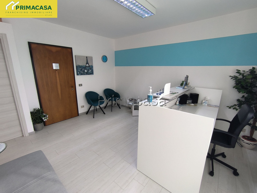 L'immobile è posto al primo piano di un recente contesto condominiale servito da ascensore ed è composto da un ampio ingresso, ideale per l'inserimento di una reception con sala d'attesa, un disimpegno che conduce al luminoso ed accogliente ufficio, un pratico ripostiglio/archivio, un poggiolo ed un bagno con antibagno.