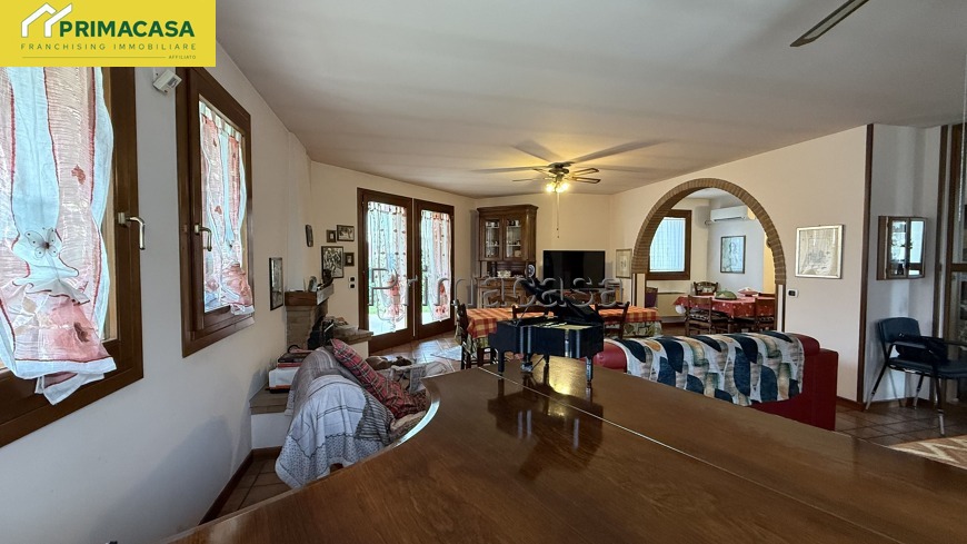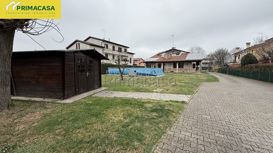 Nostra esclusiva. Proponiamo in vendita elegante villa a pochi passi dal centro di Salzano. La soluzione vanta ampie e generose metrature, rendendola perfetta per una famiglia. Al piano terra ingresso, zona giorno con cucina separata, bagno finestrato e lavanderia. A primo piano tre camere, di cui una con terrazza, due bagni e uno studio con accesso a terrazza solarium. Al piano interrato una spaziosa taverna e una cantina. A completare garage triplo e un giardino piantumato di oltre 1300 mq con uno splendido portico e piscina fuori terra.