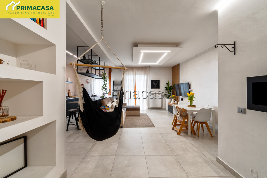 L'immobile si caratterizza per un ingresso da porta blindata su bellissima e luminosa zona giorno open space, con moderna cucina a vista e grazioso balcone.