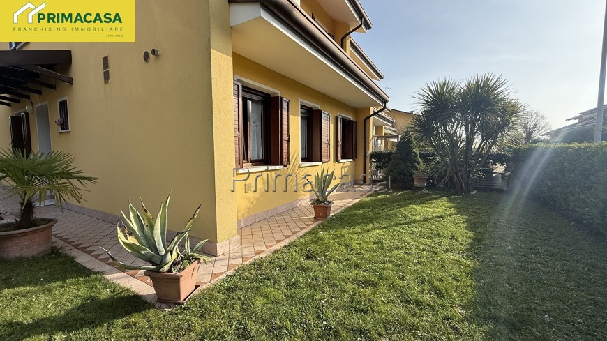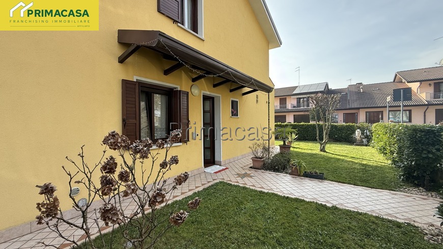 Nostra esclusiva. Proponiamo in vendita porzione di testa di quadrifamiliare. La soluzione vanta ampi spazi abitativi ben distribuiti, ideale per un giovane famiglia. Al piano terra soggiorno, luminosa sala da pranzo con cucinotto separato, bagno finestrato e due comodi ripostigli. Al piano superiore tre camere di cui una con bagno en suite, terzo bagno finestrato e due terrazze. A completare curato giardino piantumato di 200 mq e garage singolo. Posizione invidiabile, comoda la raggiungimento del centro ma allo stesso tempo in contesto residenziale verde e tranquillo.