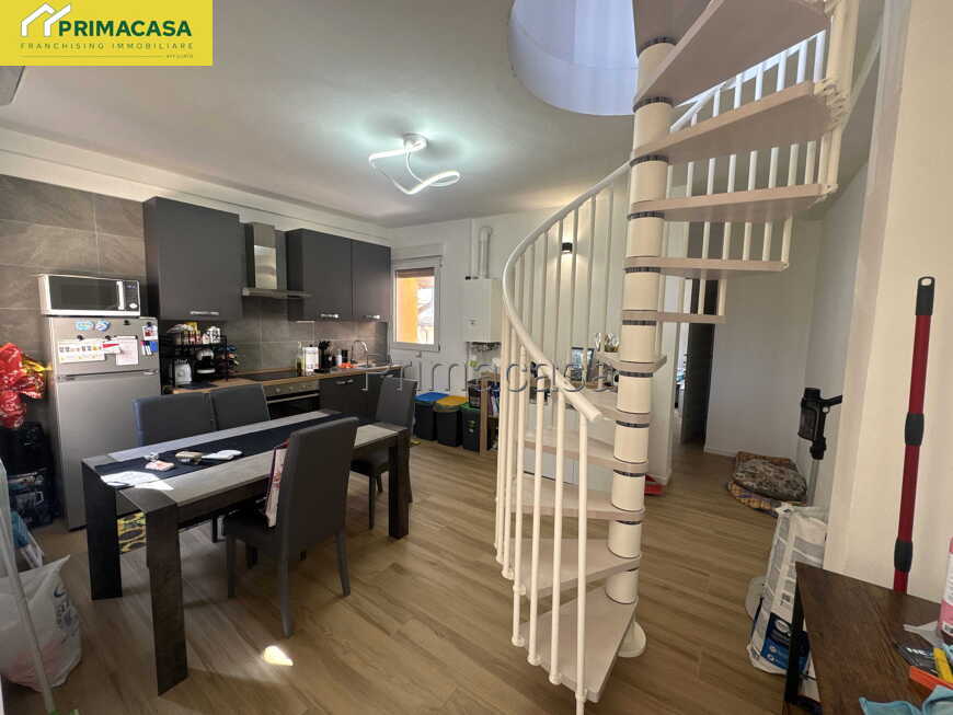 Soliera, in zona residenziale in piccolo condominio a corte, PRIMACASA propone bilocale recentemente ristrutturato su due livelli con terrazzino privato. Ingresso dal secondo piano, soggiorno con angolo cottura, camera da letto matrimoniale e bagno; percorrendo la scala a chiocciola interna si raggiunge il secondo piano sottotetto da utilizzare come spazio jolly dotato di affaccio su terrazzino privato con ulteriore collegamento al vano scale condominiale. Piano terra comoda cantina. L'appartamento è stato completamente ristrutturato con rinnovo pavimenti, impianti, clima, bagno, serramenti, caldaia, infissi e scala interna. Libero per fine 2026.