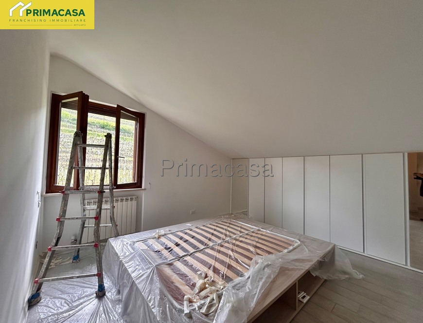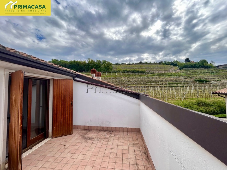 In tranquillissima zona residenziale all' interno di quartiere chiuso al traffico inserito in contesto di sole 5 unità, particolare appartamento ultimo piano ristrutturato e ARREDATO con bellissima vista colline e vigneti, composto da spazioso soggiorno, angolo cottura, camera matrimoniale, studio, bagno con balcone, splendida terrazza abitabile, cantina e garage singolo. IN FASE DI SISTEMAZIONE, LIBERO DA MAGGIO