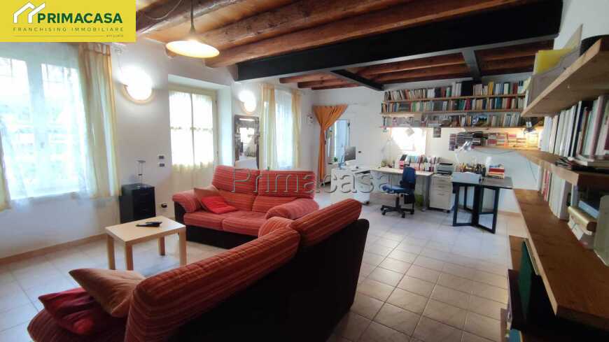 Alle porte del paese, in corte storica immersa nel verde, proponiamo ampia casa a schiera con grande giardino di proprieta'. L'unita' immobiliare si sviluppa su tre livelli fuori terra piu' scantinato; casa dai sapori antichi calda e avvolgenti pur avendo effettuato una ristrutturazione completa di impiantistica risalente agli anni 2000 che comprende anche la sostituzione dei serramenti e porte interne con materiali di pregio che richiamano lo stile rustico che contraddistingue la struttura. Entrando, al piano terra, troviamo l'ampia cucina con caminetto e lavabo in pietra direttamente comunicante con luminoso soggiorno con travi a vista e accesso al giardino, ripostiglio sottoscala e bagno finestrato. Al piano primo, sempre contraddistinto da travi a vista, 3 camere di cui una di mq 35 con terrazzo, una matrimoniale, una singola, nonche' il secondo bagno; a questo punto, non ci resta che salire ancora per trovare la meravigliosa e luminosa mansarda , suddivisa in due ampi locali con un bagno di servizio.
