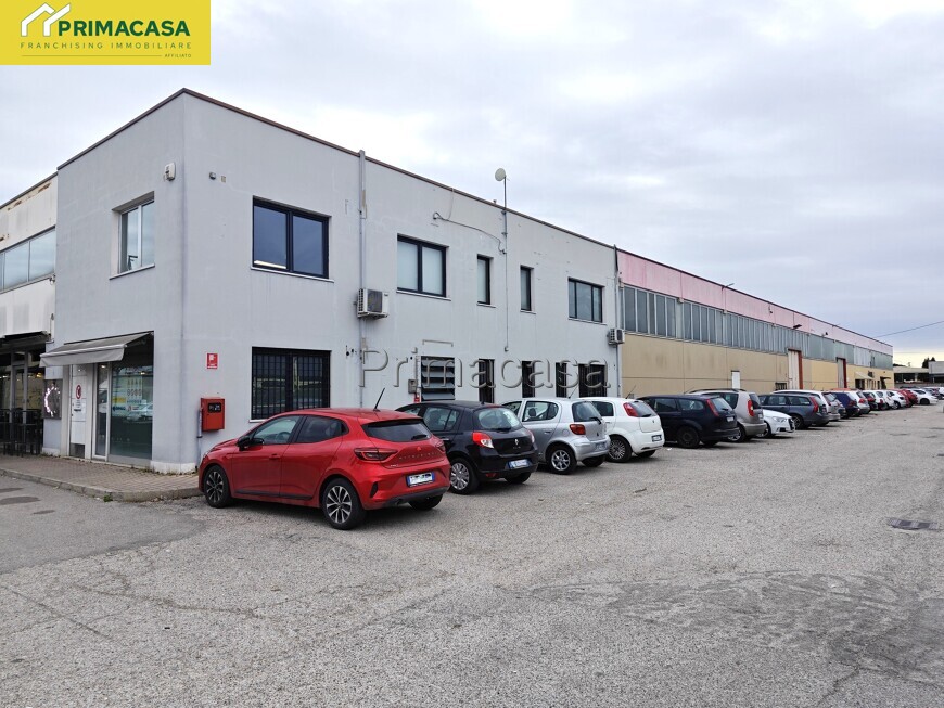 Zona industriale, a poche centinaia di metri dall'ingresso autostradale e tangenziale, capannone di 850 mq di buona fattura, senza pilastri alto 6 mt, con accesso indipendente e ampia area di manovra, situato in posizione di alta visibilità e facile accesso. Dotato di uffici con servizi di totale 250 mq. Libero subito. Possibilità di destinazione d'uso commerciale per una parte dell'ufficio. €. 5.000,00/mese.