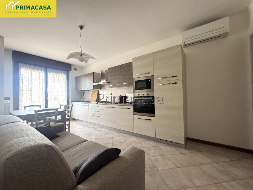 In zona comoda al centro, proponiamo in vendita grazioso bilocale situato al piano rialzato, ideale sia come prima abitazione che come investimento. L’appartamento, in buono stato, è composto da una zona giorno con angolo cottura e accesso diretto al terrazzo, perfetto per godersi momenti all’aperto, camera matrimoniale, anch’essa con uscita sul terrazzo, bagno e un comodo ripostiglio. A completare la proprietà troviamo una cantina e un garage singolo. Venduto completamente arredato, pronto per essere abitato senza ulteriori interventi. Rif. 1555