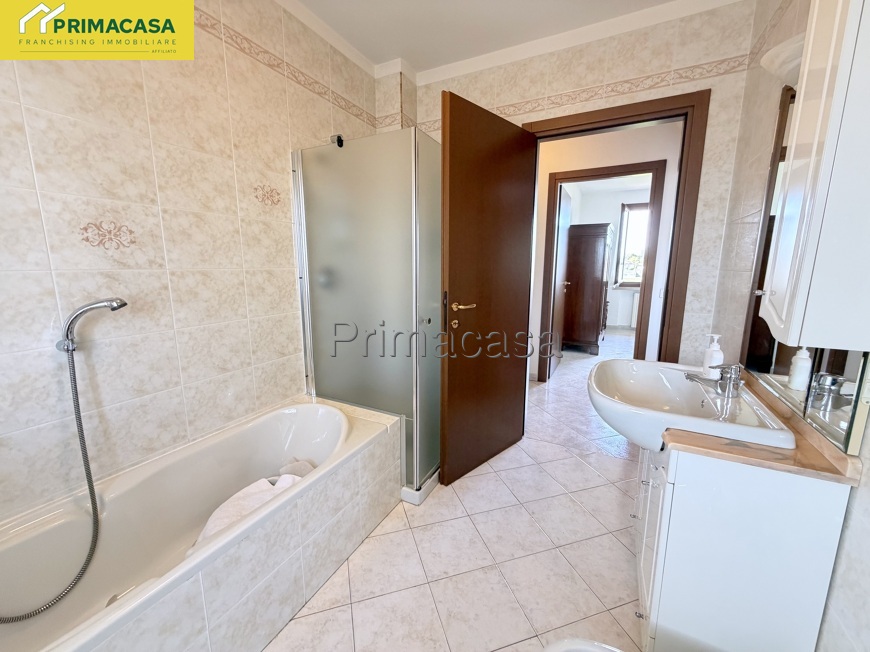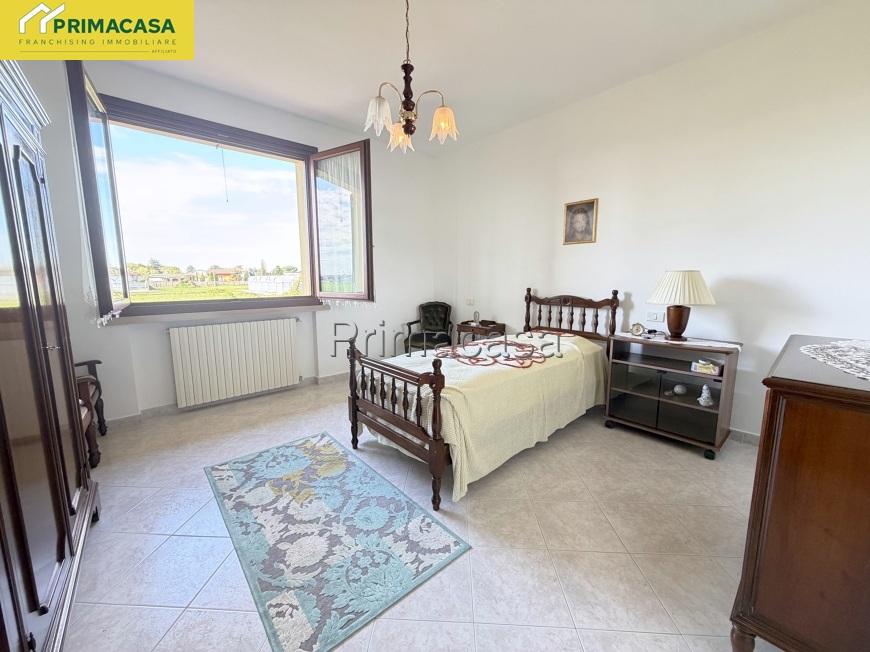 Pavimenti in ceramica chiari, serramenti in legno con vetro termopan, zanzariere e scuretti in legno di ottima fattura, riscaldamento con termosifoni in ghisa e tubazioni in rame.