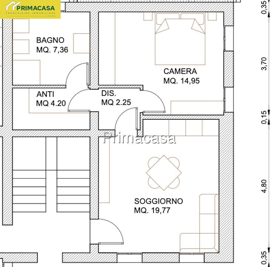 L’appartamento, disposto su un unico livello, si distingue per ambienti ben distribuiti e luminosi ed è composto da: