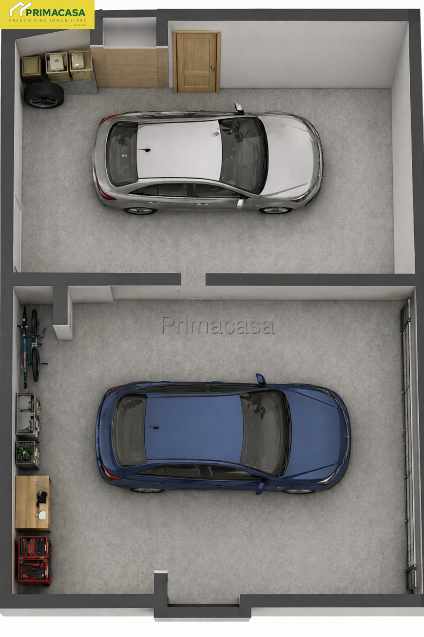 A valorizzare ulteriormente la proprietà troviamo una spaziosa cantina di 35 mq, ideale come deposito o area multifunzionale, e un comodo garage doppio di 25 mq.