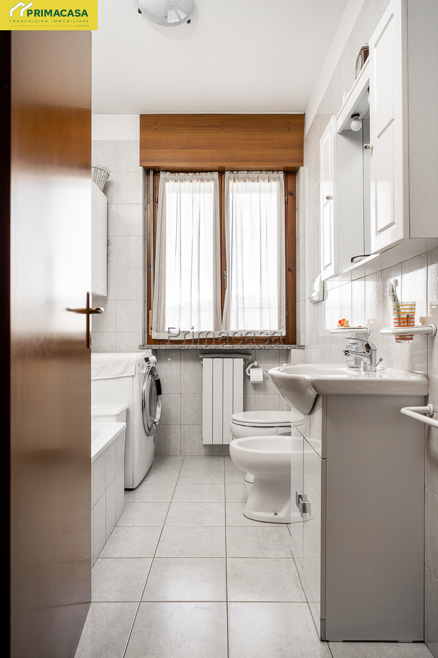 In zona centrale a pochi passi dai principali servizi, appartamento al secondo ed ultimo piano con ascensore composto di soggiorno con angolo cottura, 3 camere, 2 bagni, ripostiglio e balcone. Cantina e garage doppio in lunghezza al piano interrato. L'immobile viene venduto arredato. Rif. 2894