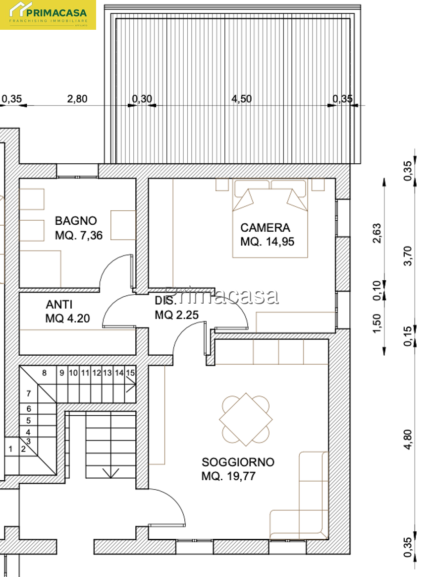 Primacasa propone in esclusiva elegante mini appartamento di 48 mq calpestabili, completamente ristrutturato nel 2026, situato al primo piano e dotato di terrazza abitabile, cantina e posto auto di proprietà, nel comune di Costabissara.