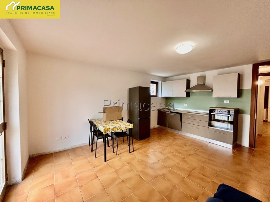 In centro paese inserito all'interno di casa singola composta di sole due unità, appartamento ARREDATO al piano terra con ingresso indipendente composto da soggiorno, cucina abitabile, camera matrimoniale, bagno finestrato e lavanderia. (non sono presenti cantina e garage)