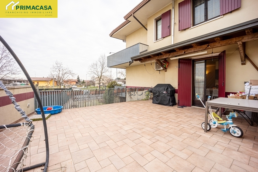 In tranquilla zona residenziale di Albaredo d’Adige, proponiamo in vendita porzione di bifamiliare caratterizzata da ingresso pedonale e carraio completamente indipendenti. L’abitazione si sviluppa su più livelli: al piano terra troviamo un luminoso soggiorno con cucina in open space, ambiente accogliente e funzionale dal quale si accede direttamente a una terrazza abitabile di ampie dimensioni, perfetta per momenti di relax e convivialità all’aperto. Al piano primo si sviluppa la zona notte composta da tre camere da letto, un bagno e un comodo ripostiglio. Al piano interrato troviamo una spaziosa taverna con camino, un bagno e un garage doppio in larghezza, ideale per ospitare comodamente due auto e offrire ulteriore spazio di deposito. Soluzione completa e ben distribuita, inserita in un contesto tranquillo ma comodo ai principali servizi del paese. Rif. 846